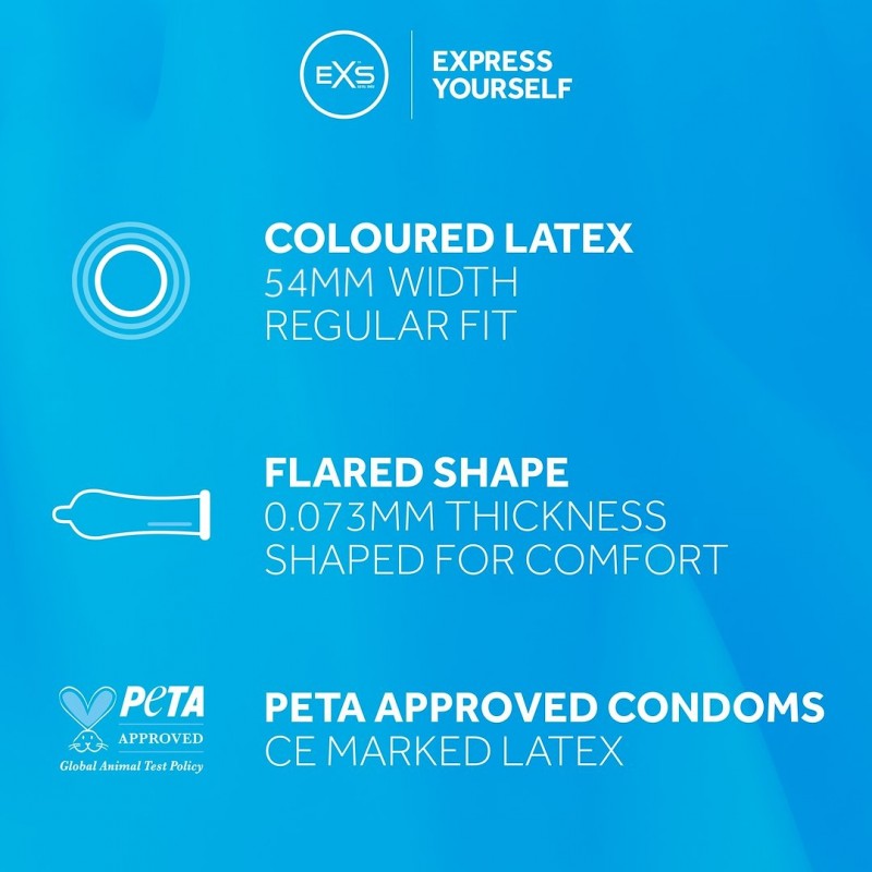 Kondomy EXS Black Latex, které jsou širší než běžné kondomy, a přesto jsou dostatečně těsné, aby bezpečně obepínaly penis, poskytují pohodlí a neomezený pohyb bez kompromisů v oblasti bezpečnosti. Široká rozšířená špička navíc poskytuje další pohodlí.